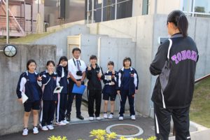 秋晴れのよい天気の中,自分たちの足でしっかり歩き,東北高校の魅力を発見した時間でした。
