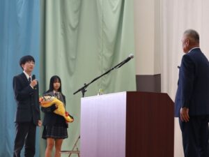 生徒会から御礼の言葉と花束贈呈