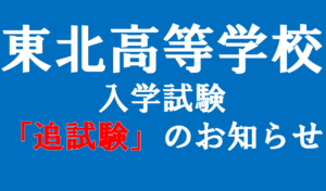東北高等学校 入学試験【奨学生・推薦、A日程、B日程】における「追試験」実施のお知らせ